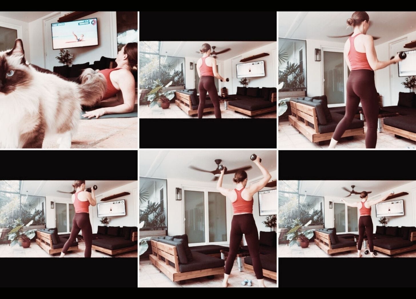 It also helps that I now workout in my outdoor living room, with fresh air and birds chirping. It’s not quite as fun as meeting friends for a class or tennis clinic, but it’s a total pleasure.